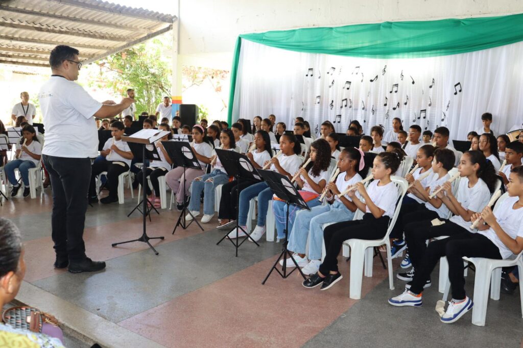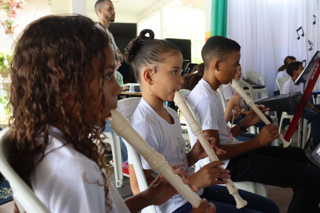 Durante ao evento crianças beneficiárias, mostraram o que aprenderam durante a execução do projeto. O momento também foi uma forma de celebrar as metas alcançadas.