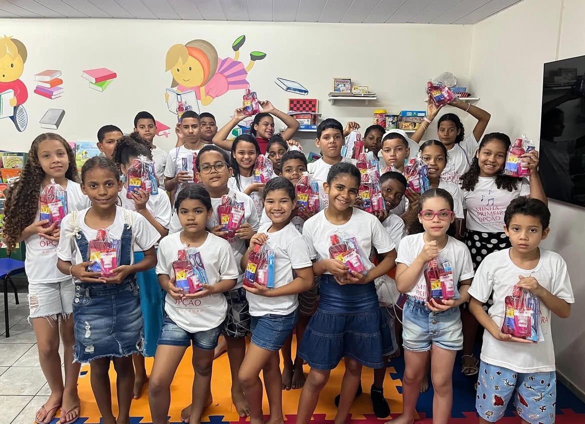 Entrega de kits de higiene bucal para crianças beneficiárias